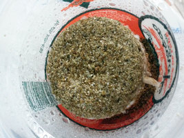 Lição 2) Ao contrário - vermiculita, água, e arroz, nesta ordem. Eu já sabia, mas esqueci e misturei a água ao arroz primeiro, o que dá mais trabalho pois até misturar bem, o arroz vira flocos e a vermiculita fica um tanto seca.