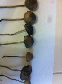 Esses cogumelos das fotos do segundo grupo, com essas características que você descreveu, provavelmente são do gênero Panaeolus, mas não são psicoativos. O azulamento seria evidente se fossem ...